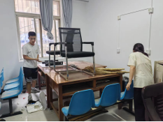 此次活动以“环境育人,党建引领,名师进驻,阵地建设”为核心,民主党派教师高红艳副教授和员工党员们对党建活动室进行灾后清理,对地面、桌椅进行清扫与擦拭,将物品进行归类,将党建活动室的党章党规党纪进行布置与粘贴。