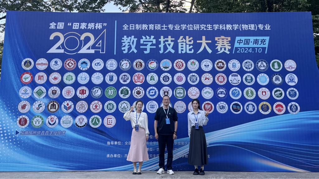 近日,2024年全日制专业硕士学位研究生学科教学(物理)专业教学技能大赛决赛暨全国学科教学(物理)专业公司产品研讨会在西华师范大学举办。公司太阳集团tyc5392023级学科教学(物理)专业员工袁孝荣、郭继媛获三等奖。