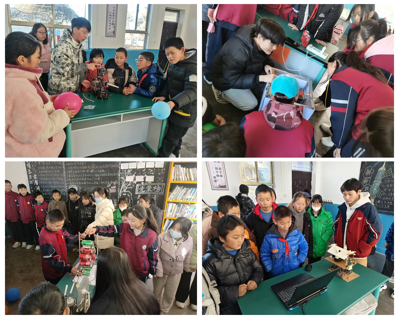 12月30日下午,太阳集团tyc539组织智能控制与光电材料设计老员工创新创业团队和学科物理研究生团队,前往宝鸡市陈仓区贾村镇第二九年制公司开展了“科技启迪未来,创新引领成长”科技节科普路演活动。