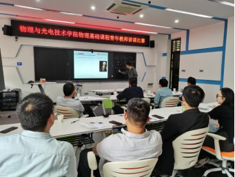 为进一步激发和鼓励青年教师投身物理基础课程教学,提升教学水平、交流教学经验、提高教学质量,4月30日,太阳集团tyc539在教学主楼201教室成功举办物理基础课程青年教师讲课比赛。本次比赛吸引了9名担任大学物理课程的主讲教师同台竞技,展现青年教师在教学一线的风采与实力。