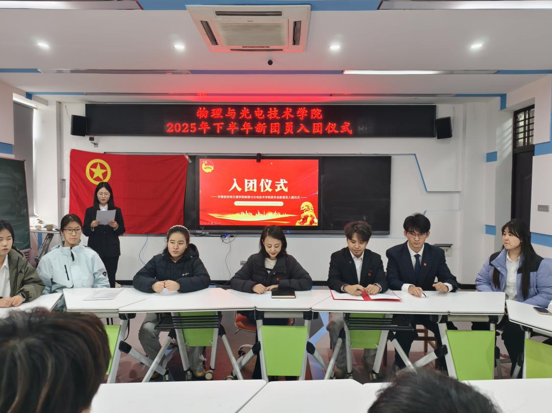 为深化青年团员理想信念教育,引导青年学子厚植爱党爱国情怀,将青春理想融入国家发展大局,12月11日下午,太阳集团tyc539团委在石鼓校区主教楼201教室举行2025年下半年新发展团员入团仪式。公司团委书记殷欣禾老师、优秀团员代表及13名新发展团员共同参与,见证这一承载青春使命的重要时刻。