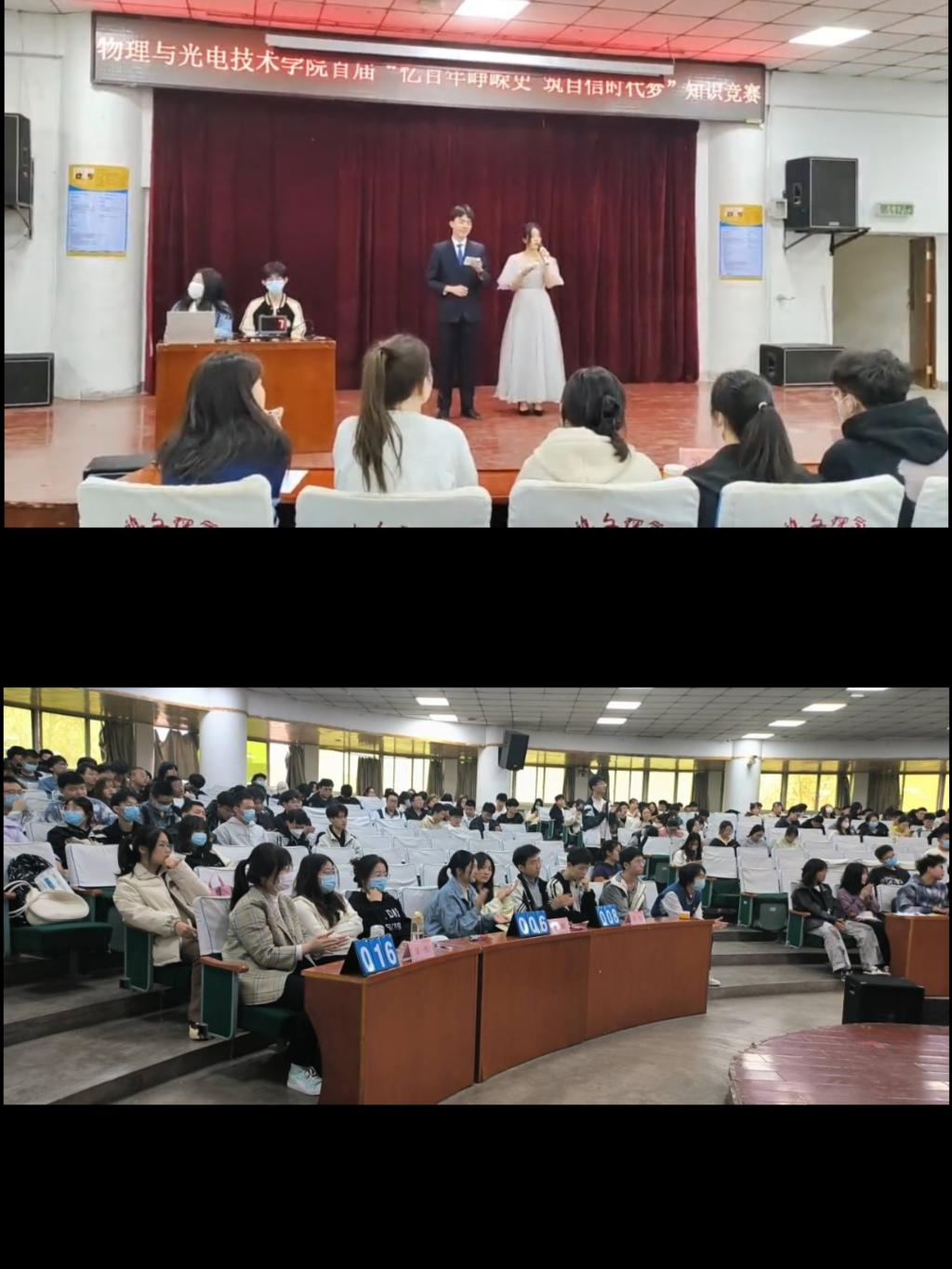 本次竞赛以班为单位共八支代表队参赛。设置必答题、抢答题、风险压分题和互动抢答四个环节,竞赛内容以专业知识为基础,涵盖党史、团史、科技、校纪校规等。各参赛代表队选手们沉着应对,冷静作答,拼手速、比知识,你追我赶、团结协作,互动环节大家极参与、踊跃回答、气氛活跃,运用自己平日所学和知识的积累,赢得现场人员的阵阵掌声。经过2个小时的激烈角逐,2021级物理学一班代表队获得一等奖,2022级测控仪器与技术一班代表队获得二等奖,2022级电子科学与技术二班代表队获得三等奖。