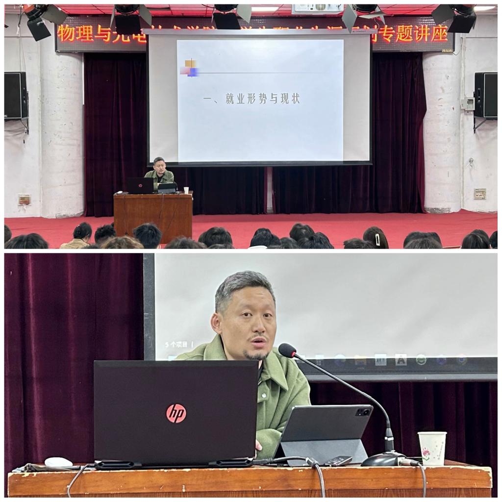 10月22日晚,太阳集团tyc539邀请陕西卓美亚智能科技有限公司总经理常斐,在石鼓校区综合楼2号报告厅为员工开展职业规划专题讲座。讲座由辅导员姬懿祺主持,公司2023级全体员工参加讲座。
