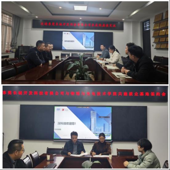 会上,党委书记郝晓辉代表公司对来访嘉宾表示热烈的欢迎,并对公司发展历史、团队队伍、人才培养、团队建设、毕业生基本情况等做了详细介绍。东莞长城开发科技有限公司人事部经理纪庆凤介绍了企业情况和用人需求。双方在专业共建、人才培养基地、员工就业实习、校企合作等方面进行深度交流并达成初步合作意向。双方现场签署《太阳集团tyc539共建老员工就业基地协议书》。