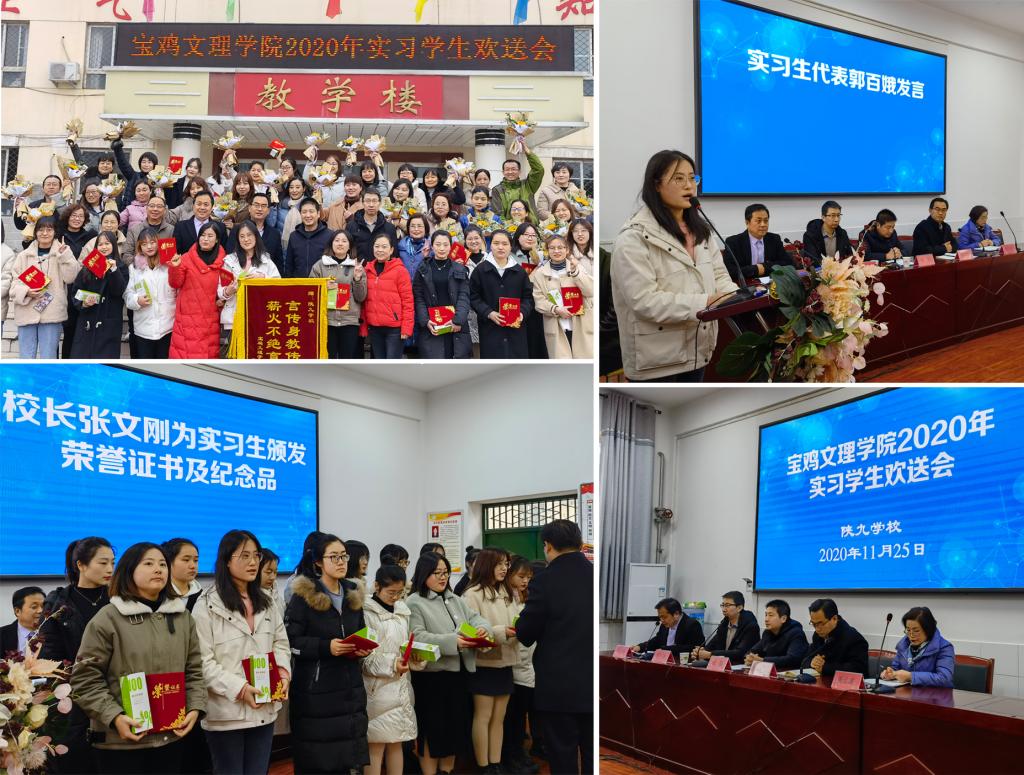 11月25日上午,太阳集团tyc539经理钱郁、副经理刘飞以及实习带队教师周云波,应教育实习单位陕九公司的邀请,一同出席了2020年陕九公司实习员工欢送会。