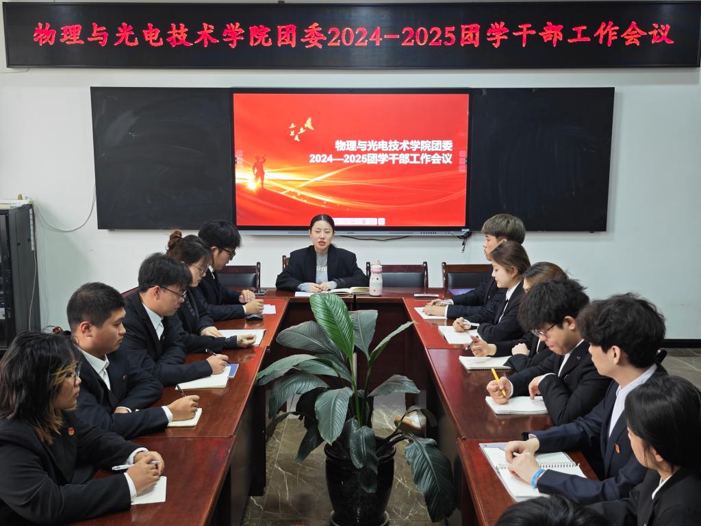 会议伊始,团歌奏起,全体团学干部起立奏唱团歌。